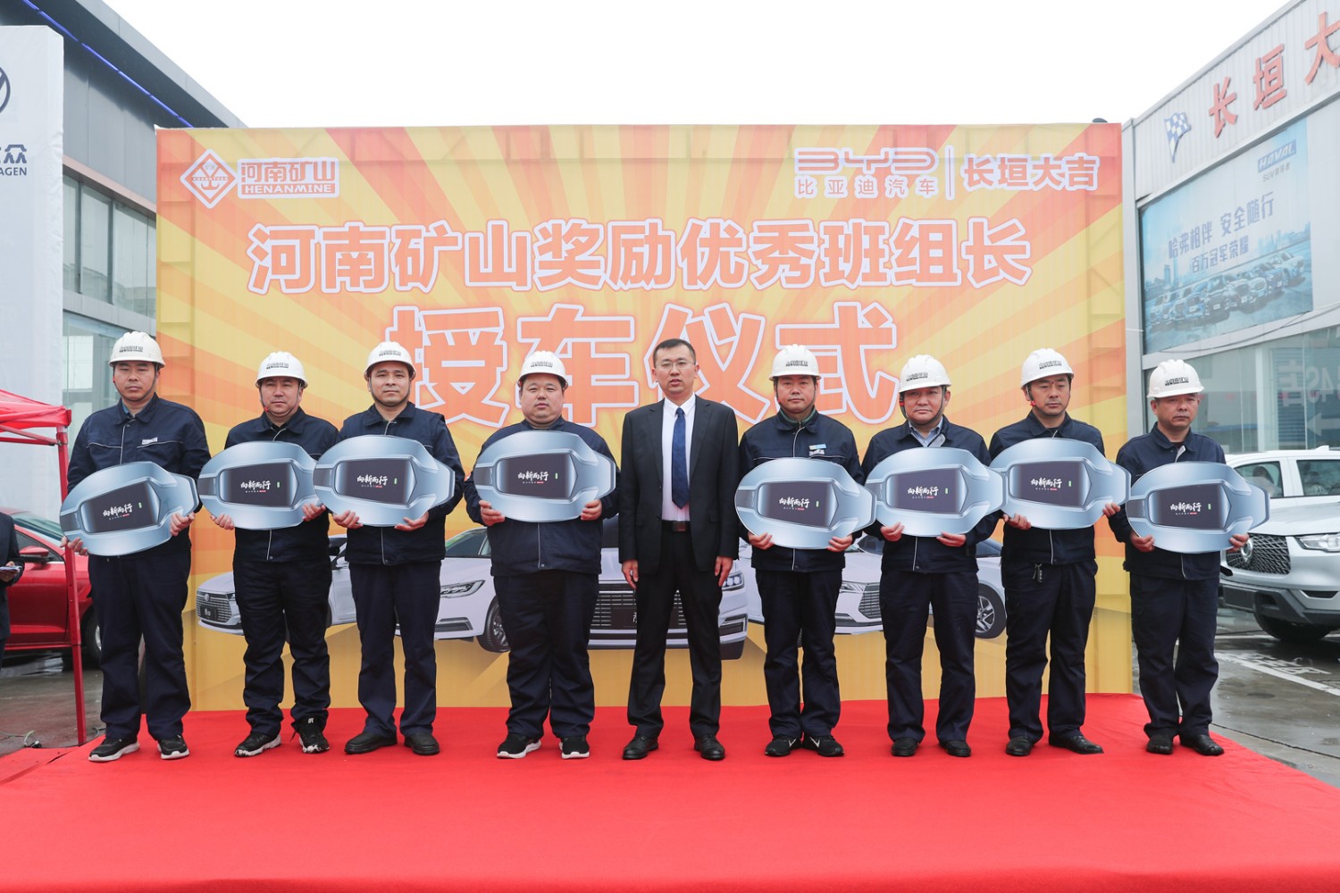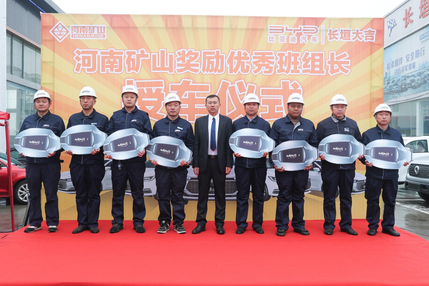 3月11日,河南礦山獎勵**班組長授車儀式在長垣大地亞飛汽車城內隆重舉行。公司24名一線**員工得以重獎,每人獲得一輛純電動比亞迪全新秦EV。據(jù)悉,該批車市場總價值420余萬元。